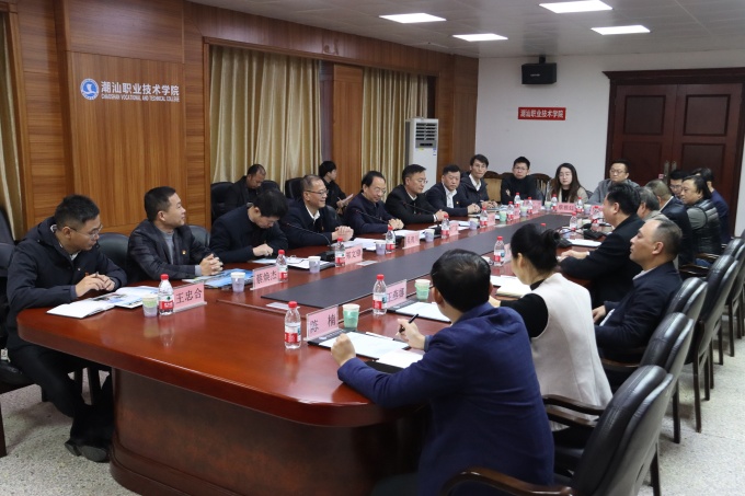 1月13日上午,韩山师范学院党委书记吴青川、党委副书记林广文一行莅临潮汕职业技术学院(以下简称“潮汕职院”)交流指导,潮汕职院校长黄文勇、党委书记李育华、财务总监罗文坤、副校长谢耿、党委副书记王笃学等领导热情接待。双方在二楼会议室召开座谈交流会,并举行党建和思政工作结对共建签约仪式,标志着两校合作迈入资源共享、优势互补的协同发展新阶段。