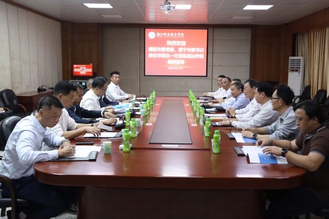 梁柱华强调,潮汕职业技术学院要聚焦培养更多高素质技术技能人才,坚持正确办学方向,通过良好的教育教学安排,确保每名学生都掌握一技之长,精准匹配企业、地方和社会发展人才需求。要加大科学研究力度,营造浓郁学术研究氛围,紧密结合普宁产业布局,进一步深化政校企合作,积极对接市内实训基地、场景应用平台,推动产学研用深度融合,助力学子实现高质量就业创业。要持之以恒提升办学质量,立足自身办学优势,打造特色专业,积极探索提升办学层次路径,推动学校发展再上新台阶。