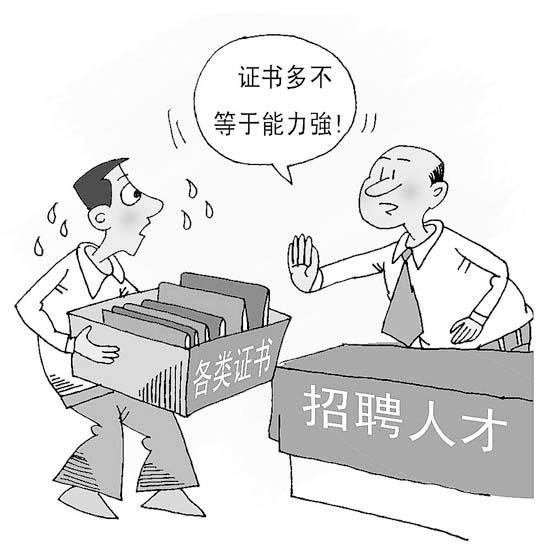 ![]() 国务院近日印发《关于取消和调整一批行政审批项目等事项的决定》,取消了房地产经纪人、注册税务师、质量专业技术人员、土地登记代理人、矿产权评估师、国际商务专业人员等11项职业资格许可和认定事项。有评论认为,此举将使“考证热”降温。 近年来,不少在校大学生热衷于考取各种资格证书。在一些人看来,这能让他们在找工作时有更多“砝码”。然而,有关人士指出,由于考试太多、证书太滥的问题突出,有的年轻人“手上拿着一大把证,可就是找不到工作”。 “周围的同学都在疯狂地考,我也就跟风了” 1米78的高个儿,中等身材,戴着黑框眼镜,说起话来有理有据,夏天总爱穿着格子衬衫,让周昊身上多了几分书生气。跟同龄人相比,黝黑的他看上去很稳重。 今年读大四的周昊,学的是公共事业管理专业。4年前,踏进大学校门时,他就在心里给自己作好了规划。他说,文科生一直以来就业压力较大,作为一个男生,以后的担子又很重,于是自己也加入了“考证党”。 虽然所学专业是教育方向,但周昊逐渐发现自己对人力资源方面更有兴趣。在别人看来,毕业后当一名老师很不错,在他心中,却始终坚信“兴趣是最好的老师”。他决定在学好本专业课程以外,自学与人力资源相关的课程。为此,在平时自习时他总是会带上几本与人力资源相关的书籍,没课时旁听人力资源管理专业的课程,“我不是科班出身,只有具备相关的基础,在找人力资源相关的工作时才会有机会”。 从大二开始,周昊在学生会工作,担任学生会干部,后来还兼任学院办公室行政助理。“这些工作虽然不起眼,但却一点点增强了自己对人力资源的兴趣”。 上大学以前,在同学眼中,周昊一直是个“腼腆的书呆子”,如今的他,同学聚会时侃侃而谈。人力资源工作其中一块是负责企业招聘和员工培训,“我很庆幸之前做了很多与人面对面交流之类的兼职,比如家教和学院助理工作,这些让我在与人沟通上轻松了很多”。 尽管手里已经有了英语六级、计算机一级等证书,他觉得还不够。周昊决定报考人力资源三级,人力资源三级证书是从事企业人力资源相关工作的门槛,虽然只是相对优势,却也足以吸引大批学生争相去考。 去年3月,周昊和同学一起报了名。报名参加这个考试,一般都要在培训学校里上课,培训费400元,周昊当时犹豫过,“他们提供复习资料,请老师讲两次课,交了这么贵的学费,心里有压力了,更会好好复习”,一想到这,他就打定主意报名了。其间,除了正常上课外,他每天5点起床背书。后来,周昊顺利通过了考试。 除了三级人力资源证,周昊也考过计算机二级。“周围的同学都在疯狂地考,我也就跟风了。”计算机二级要求比较高,学文科的他没有相关的任何专业基础,尤其是编程,学习起来很费劲。虽然花费时间比较多,但考了几次都没过,最后他放弃了。 虽然这个考试没有考过,周昊却明白了一个道理,如果没有任何兴趣,拿到证的可能性和意义都不大。“跟专业相关,又有兴趣,就可以考虑考证,兴趣应该是考证的动力和前提。”于是,之前还准备考会计证的周昊暂时放弃了这个想法。 被迫考证的“叛逆学生” 李航(化名)是广州一所高等职业学校模具专业大三的学生,在同学眼里,他一直是一个“离经叛道”的学生。“因为我经常做一些让他们意想不到的事情。”李航说。 为了不考证,李航在微博里还@了广州市教育局和广东省教育厅等官方机构。“我也没指望一定能得到解决,写写微博,心里的不满就发泄出来了。”李航深知,学校出面解决的可能性很低,但他还是希望能让学妹学弟们免受学校的强制。还有几天就要考试了,李航一点压力也没有。他说,这个证水分很大,过关率很高,还没考已经知道3个题目了,“这样的考试有什么意义?” 经过几年的学习,李航发现自己对做技工的兴趣并不大,毕业后不想从事技工工作,“相比对着一堆零件,我更擅长也更喜欢跟人打交道,做销售之类的”。 李航说,大一刚进校门时,老师就告诉大家,作为模具专业与制造的学生,需要有一个数控证书才能毕业。“说不上反感,但如果学校不强制的话肯定没人考。”李航说,对他们来说,这个证的作用并不大,毕业从事什么职业的都有,“就算有做技工的,也很少有人会干一辈子”。 在同学眼中,李航是“另类”的,大家都会做的事,他总是不屑于顾,而遇到这样大家不敢反抗的事情,他总是毫不犹豫。上大二时,李航在微博上向学校提议安装空调,最终得到了校方的回应,安装空调已在学校计划中。 大学期间的兼职,让他发展了自己的爱好,也发现了自己的优势。一直都喜欢跟人面对面交流的他,在学校附近的各大卖场做导购,几年下来,接触了形形色色的人,李航发现自己越来越爱这类工作。“我报错了专业,我更喜欢沟通协调类工作。”他说。 尽管在微博上叫闹了一番,可李航眼中没用的数控证书还得考,“我们真悲哀。”他说。 “超级学霸”的考证生活 陈乔(化名)是一所985高校的历史学专业学生,“超级学霸”是同学们对她的一致评价。 学习、读书几乎就是陈乔生活的全部。基地班的课程很多,每天上完课,别人都往宿舍走的时候,她仍然坚持在教学楼或图书馆继续坐上一小时,看看书,写作业。“一回宿舍就没有看书的心情了呀!我把手头的作业都处理完,回去就能放开了玩。”大家都在为第二天的课程熬夜