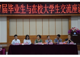 2017年7月1日下午13:00整,经管学院在综合楼第一报告厅举行2017届毕业生与在校大学生的座谈会,到场的嘉宾有:潮汕学院党委书记韩淑芳、经管学院院长李晓艳、就业办助理吴智勤、院长助理唐琛、团总支书记孙正杨老师。17届双优毕业生张泽雄、17届优秀毕业生代表潘泽大同...