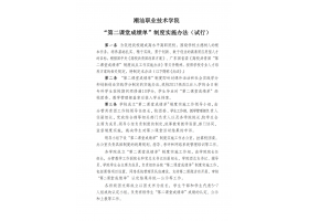 潮汕职业技术学院 第二课堂成绩单制度实施办法(试行) 第一条 为促进我校建成高水平高职院校,围绕学校立德 树人的根 本任务,培养基础扎实、精于实践、勇于创新、敢于创业的高素质应用型人才 的目标,根据团中央《高校共青团改革方 案》、广东团省委《高校共青团第 二...