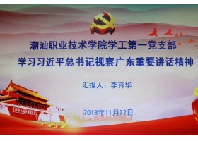 为贯彻落实全面学习党的十九大的精神, 11月9日晚上7:30,潮汕学院 学生党支部 新时代、新征程 学习党的十九大精神 学习讲座 在综合楼第二报告厅召开。此次党课由 学生党支部 组织委员陈楠支持、 支部 书记钟逍彬主讲,各 二级学 院团总支书记、辅导员和各学生组织 干部 等...