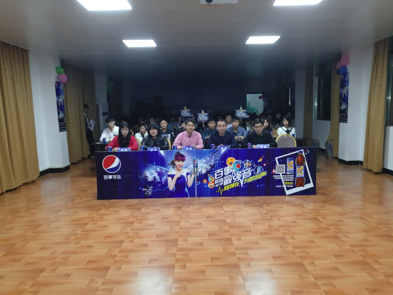 | 信息工程学院学生会于2017年3月19日晚上七点在文体楼二楼,举行校园百事最强音初赛复赛,本次活动邀请了团总支书林雯虹老师、辅导员林楷老师、方展奋老师、郑泽敏老师、赞助商陈洁锐先生。