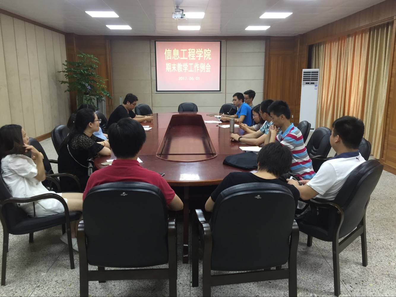 信息工程学院于2017年6月1日15点,在二楼会议室召开全体教师工作会。本次会议主要议题是期末教学及期末考务工作安排。会议由教学副院长胡佑君主持。