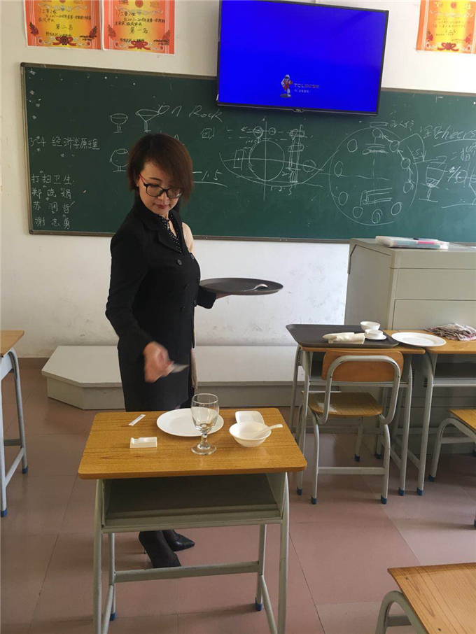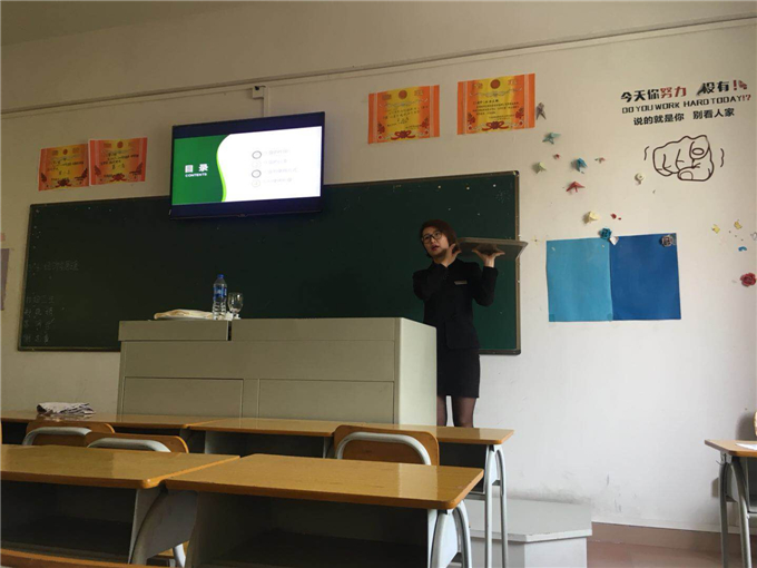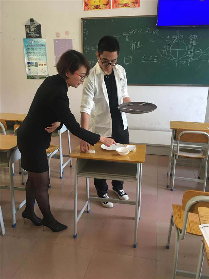 2018年3月16日,康莱酒店人力资源部总经理孙总到我校博学楼X406为我院16旅管班授课。 根据我院与康莱酒店建立的校企合作方案,由有着将近二十年从业经验的康莱酒店人力资源部孙总担任我院16旅管班《餐饮服务与管理》课程的老师,第一周我院16旅管班已完成在康莱酒店的实践授课,从本周开始一直到第9周,康莱酒店孙总将在每周五早上到我校为我院16旅管班授课。在此次的课程上,孙总先是为同学们复习上周五所学的知识点,随后教同学们一起学习餐饮服务中的摆盘知识,例如认识餐具、餐具的使用、摆盘角度等。 在课程最后,孙总让同学们轮流摆盘,并一一细心指导并纠正同学们的错误操作。相信同学们将在此次校企合作实践教学中收益颇丰,实现康莱酒店和我校的互惠双赢。