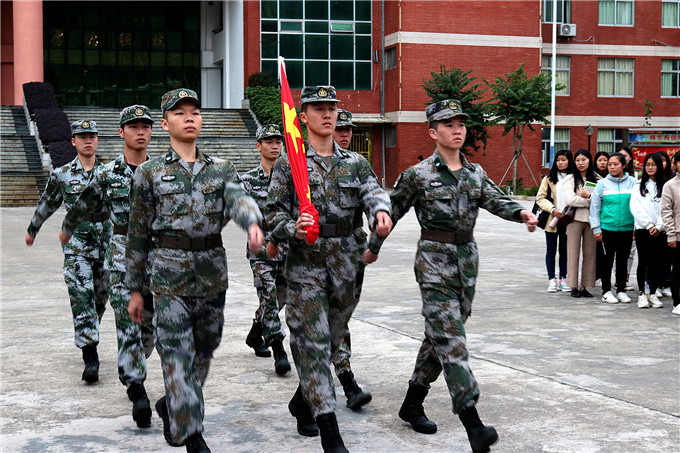 国旗随着雄壮的国歌在校园中冉冉升起,整个校园弥漫着庄严肃穆的氛围,激发学生发自内心的高尚情感,引起学生深度的思考。