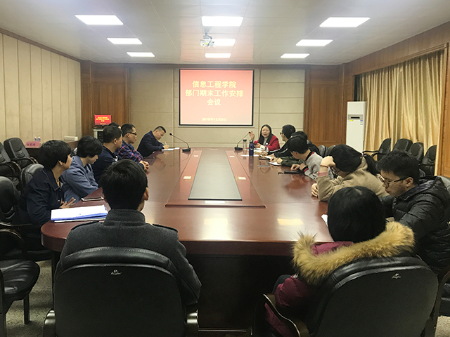 | 2019年12月5日下午4点20分,信息工程学院在二楼会议室召开全体教师期末工作部署会议。会议由信息工程学院党总支书记杨燕贤主持。会议内容如下: