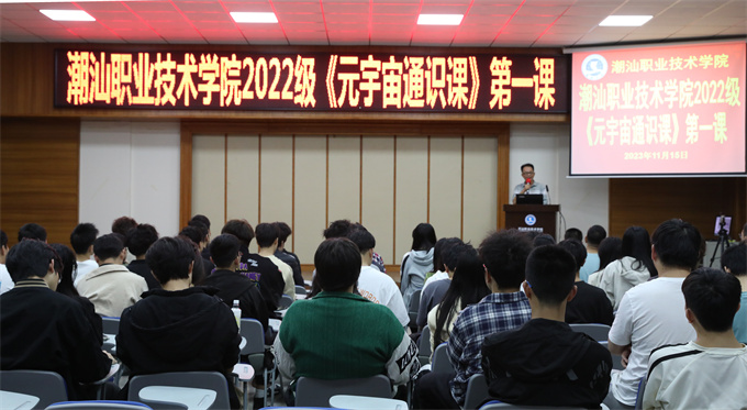 11月15日,潮汕职业技术学院2022级《元宇宙通识课》第一课在学校第二报告厅开讲。学校副校长、元宇宙产业学院院长颜惠雄给学生带来了一场妙趣横生的元宇宙公开课。