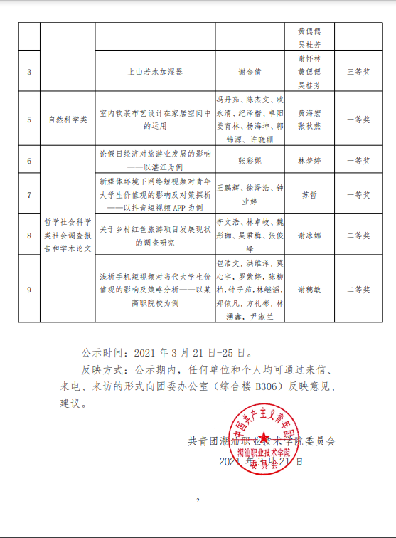 关于推荐校内优秀作品参加第十八届“挑战杯”广东大学生课外学术科技作品竞赛的公示
