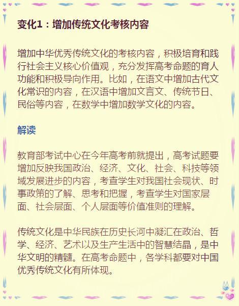| 高考全国卷还真是不让大家省心,距离2017年高考177天了,前段日子,教育部考试中心突然下发《关于2017年普通高考考试大纲修订内容的通知》,通知说除了英语之外,其他八门学科明年高考内容都有变化!而且数学也要考传统文化!这是为什么?