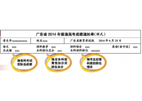 广东省考试院正式通报,2014年广东省普通高考成绩将于6月25日公布,6月25日12:00起,考生可通过相关网站、电话和短信等方式查询自己的考试成绩。考生高考成绩单将由各县(区)招生办公室下发给考生。...