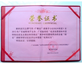 我院思政部赖秋波老师在日前参加由广东省教育厅主办、广东省高校毛泽东思想和中国特色社会主义理论体系概论教学研究基地承办的全省概论课教学研讨会论文评比中荣获优秀奖,颁奖典礼及课程高级教学研讨会于5月中旬在南方医科大学举行,全省30余所本科、高职高专院校的优秀论...