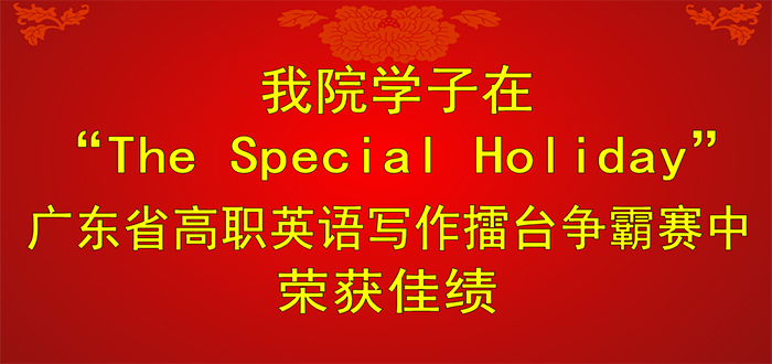 我院学生在“The Special Holiday”广东省高职英语写作争霸赛中获佳绩。...